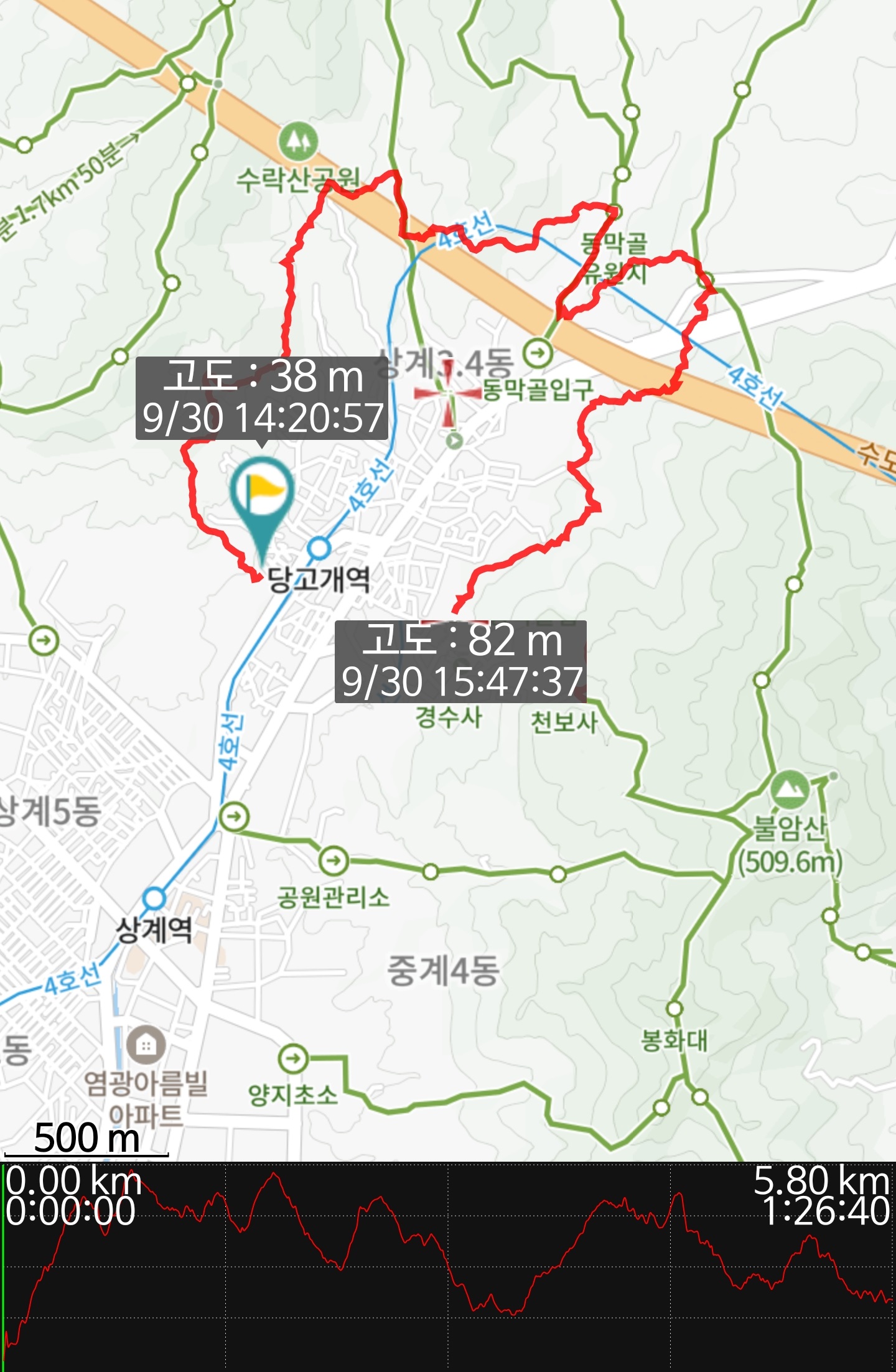 전셋집에서 세탁기를 없앴던 것은 큰 실수! 고장난 것도 아닌데 왜 그걸 버렸는지... 그렇게 손빨래를 하는 편인데, 그저께도 둘레길 세코스를 걸었기에 집에와 빨래를 하는 중에 작은 빗 하나를 빼지 않고, 큰 대야에서 화장실 변기로 세제물 버리면서 변기가 부분 막혔고, 그런데 착각으로 카드까지 들어간 것 같아서 블로그로 검색된 전문가 (010-3999-1181: 상도동) 에 연락했는데, 잉 저녁에나 올 수 있다고 할 줄 알았는데, 12시에 올 수 있다는 말에 나가지 않고 기다려, 단순히 빗 하나 있어서 쉽게 해결이 되어 오후 1시 10분인가 나올 수 있어서 당고개역에 가서 09월30일(월) 14:20:57~ 18:51:17 (4:30:20 거의 쉬지 않고 진행, 4코스에 잘못 걸어서 돌아간 시간이 조금 있었습니다) 걸었습니다. 중간 역에서 귀가후 내일 가야지 했는데, 가보니 잉 중앙선이라 타면 꼬일 것 같아서 ... 거기에 4코스가 후반부가 길이 아주 좋아서 마음 편히 걸었네요. 다만 4코스 끝내고, 사가정역으로 복귀하는 코스가 깔딱고개란 이름이 붙여진, 그래도 내리막이라, 담엔 오르막도 경험하니 역시 다음 번엔 중간지가 아니라 경유지로 가서 이길은 경험하지 않는 것으로 계획하는 게 맞을 것 같습니다. 사가정역에서는 육쌈냉면 이란 간판에, 우리동네는 전업을 해서 간판 사라진 것을 봤기에 온김에 꼽배기로 귀가했습니다. 어제 만난 형님께서 길 걷고 나서는 그곳에서 한잔 하고, 구경도 하신다는 말에... 사가정역에서 저녁을 먹었던 것 같기도.
